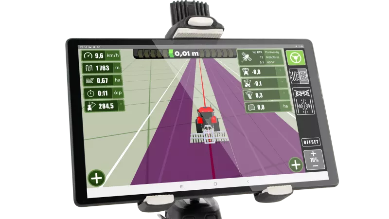 Dokáže navigovať / navádzať všetky druhy strojov a činností. Zabezpečí aj ovládanie trisiek postrekovača a dávkovanie hnojiva za polovičnú cene insvestície ako u koncernových riesšení.